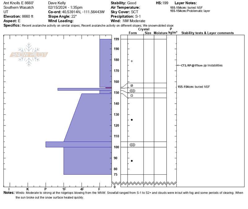 This snowpit had similar structure to an area nearby where we were able to trigger an