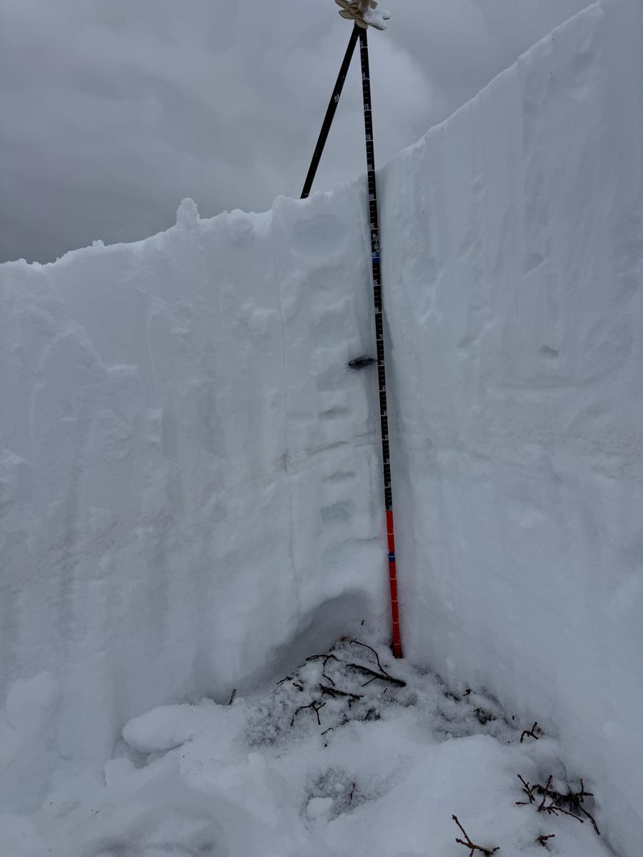 We dug 2 snowpits that both showed the weakness and propagation on a thin 1cm layer of broken precipitation particles (needles). Crystal card marks weak layer. We discussed it and do not believe it would have been easy to identify this layer with quick hand pits, probe or ski pole tests and that the only way to find this layer would have been a snowpit with some form of stability tests.
