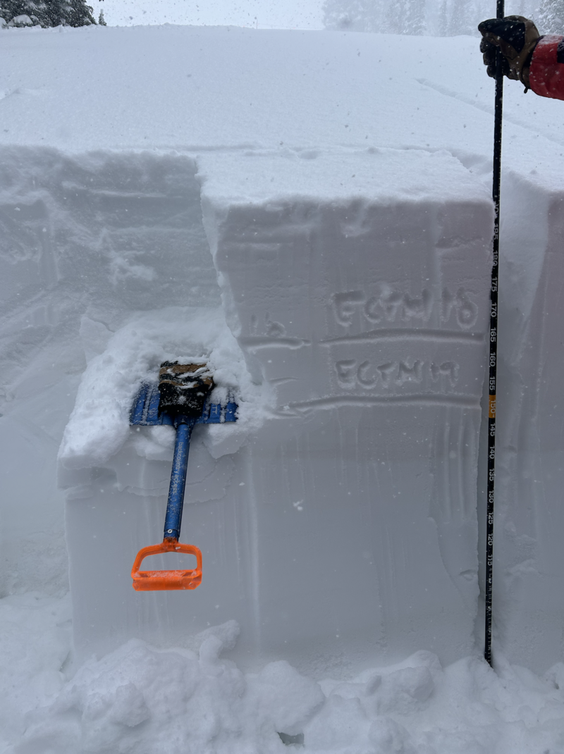 12" of new snow and over 1" of SWE is definitely red flag-worthy, although the new snow seemed to be bonding well. We saw some light wind loading above 9,500 feet, which was creating a 4F wind slab. It seemed like you'd need to add wind to the equation to get an avalanche in this area.