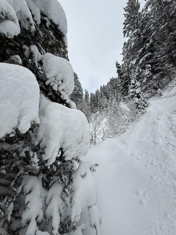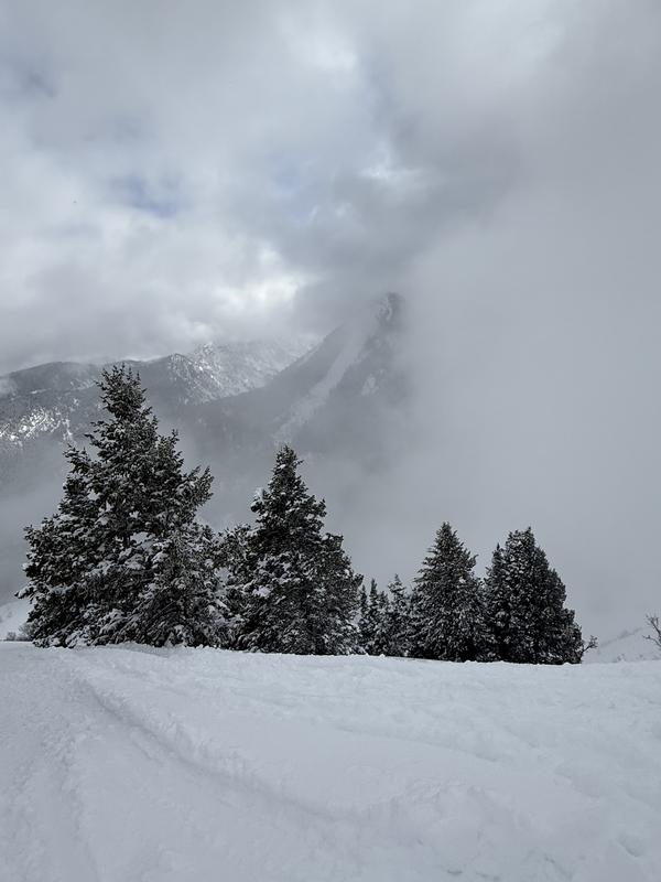 I couldn't see Raymond, Gobblers, Reynolds, or Kessler due to low ceiling. I'm guessing some snow will move over the weekend due to warming temps. The considerable avy rating should keep us low angle too. Stay safe!