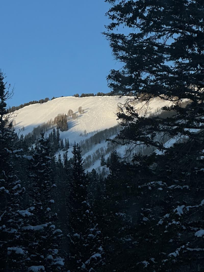 3) Rowdy skinner and lines on Reynolds. Lots of tracks heading into top of old crown in red. Great example of the importance of timing when skiing south.