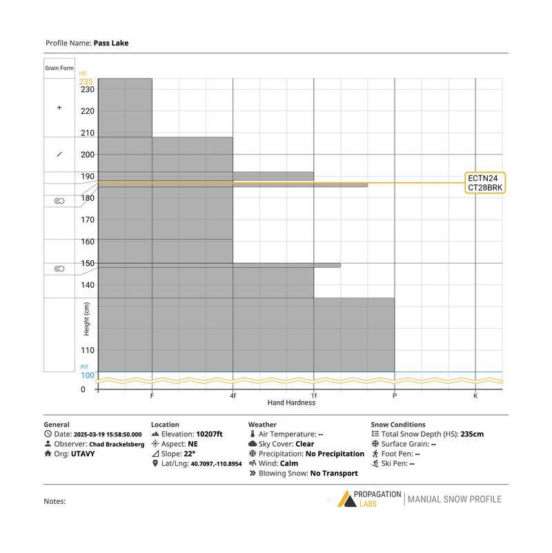 We dug a snowpit on a north east aspect at about 10200ft. As you can see in the pics, we identified two "melt freeze" crust layers that could be problematic. See pics below.