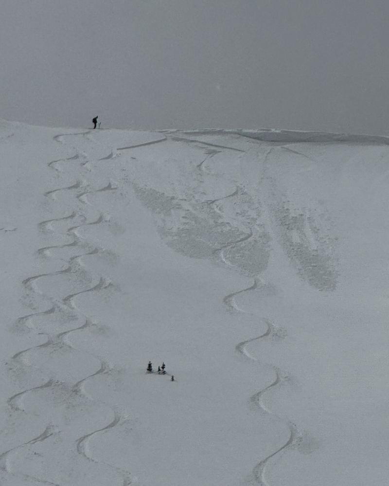 Went to PC Ridgeline today hoping that the old tracks got smoothed out by the wind and a coat of graupel would improve the skiing. Up in the wind zone this seemed to be the case, out of the wind zone old tracks could be seen and felt. The main hazard today was shallow windslabs on the ridgelines which could easily be controlled with ski cuts, they were up to 8 or so inches deep and would run a few hundred feet. The wind continued to blow most of the day so there might be lingering windslabs tomorrow but I would expect them to settle out quickly.
