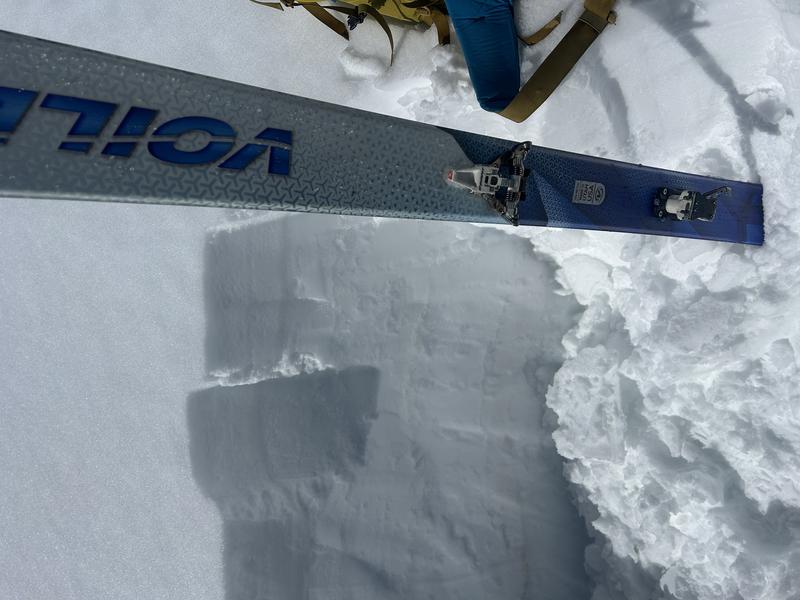 Early March dust/crust/facet layer - this did not look as suspect today at 8880' ENE; not really much of a structural interface. (second photo) I imagine it would in other areas. Remains suspect this week.