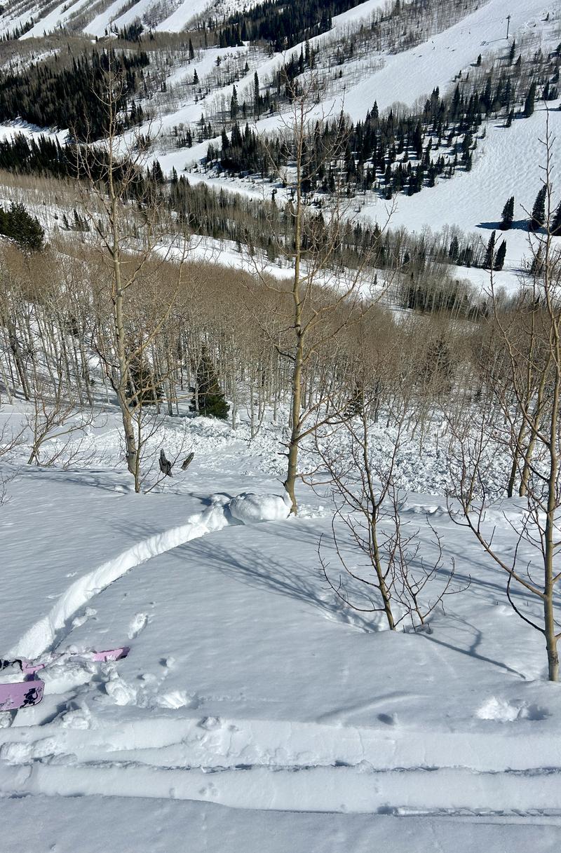 In the Central Wasatch, the south end of the Park City ridgeline is often the canary in the coalmine for wet activity, particularly wet slab activity. It's been a difficult winter with a fairly complex snowpack structure and I wouldn't be surprised to see that continue on into spring. Wet slabs are *more likely* when these conditions (highly structured) exist and then we start to look for pooling of free water at these interfaces. They generally pool adjacent to crusts or just below a 'cohesive slab' at a layer of more coarse grains (often facets or depth hoar).