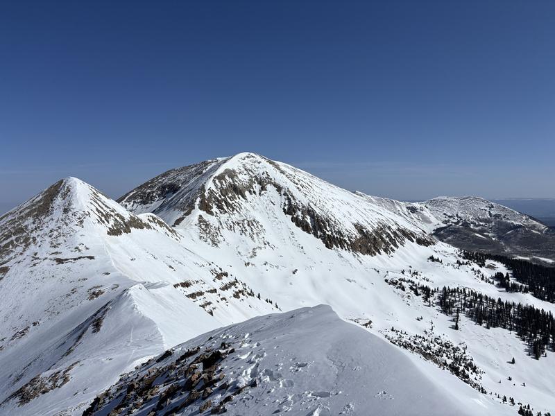 Previous skin tracks seemed to be slightly filled in from wind transport as there is still cold soft snow at upper elevations in areas sheltered from the sun. There are wind drifts along the ridge line from Laurel to Peal/Tuk from westerly winds. Evidence of loose/wet slides and rollerballs from previous days was all around on aspects with solar gain, greater on westerlies.