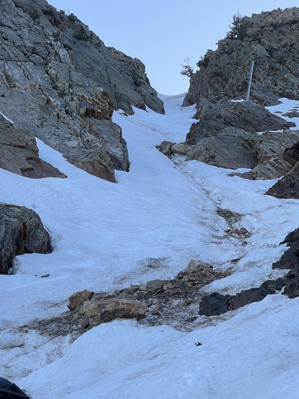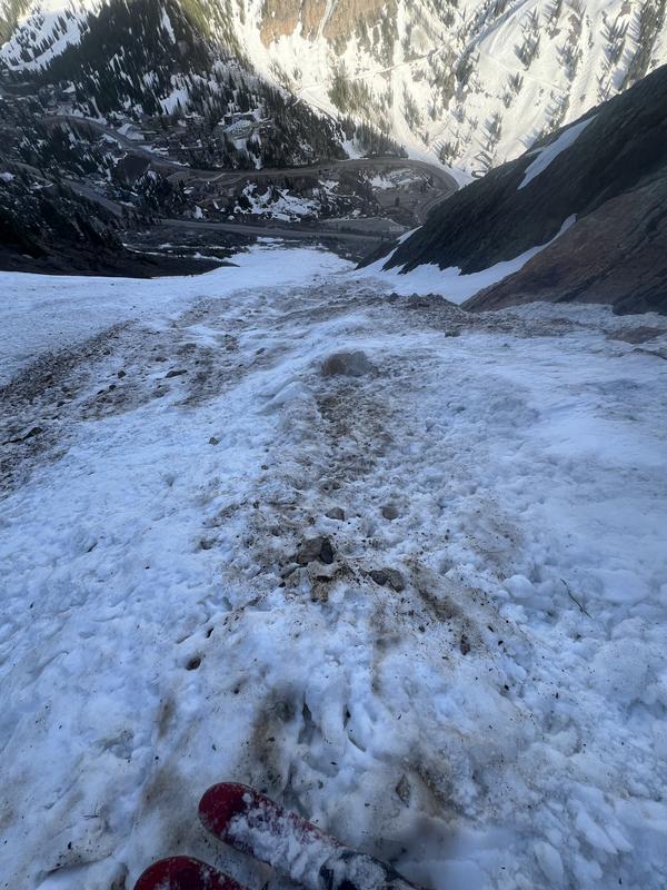 Large rockfall event in suicide chute the week of may 5th. Skied south face on 5/12 and took a look at it. Loose rock remains above (we watched two good size chunks fall in our two minutes there), multiple large boulders are perched on the snow waiting to slide down the rest of the chute, and finally there is debris well through the choke onto the apron that takes up the full width of the chute. You can poke through the rocks, but it ain't super pretty.