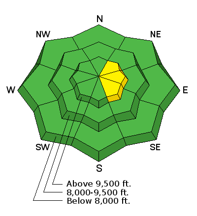 current conditions Weather and snow over the weekend felt more like April to me than early February. Saturday brought a few inches of new snow which was damp at lower elevations but held 'powder like' conditions on the upper elevation northerly slopes. With the very mild temperatures, the lower elevation snowpack was completely saturated below around 7500 feet and many slopes became wet during the day. Skies cleared out Saturday night with a good solid refreeze and we were left with lots of crusts which didn't soften all that much on Sunday. The 3 inches or so from Saturday is still powdery on the northerly facing terrain. That snow sits on various sun and wind crusts and a few spots of dense near surface facets. These hidden crusts are somewhat unpredictable while riding. I did note a few plumes coming off the peaks from the north Sunday morning. Temperatures overnight were in the low to mid 20s and west northwest winds increased in speed along the mid elevations for a period and appear to be slowing again. The highest most exposed terrain continues to see somewhat breezy conditions with averages in the 30s. 1 to 2 inches of snow fell overnight and it's currently snowing lightly. |